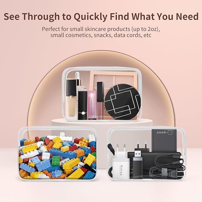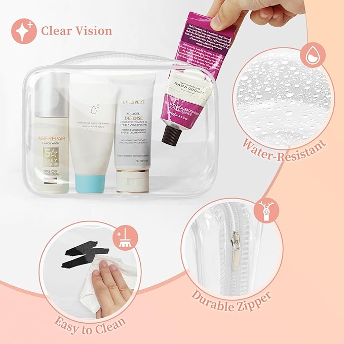 - 【Clear Makeup Bags】The transparent design allows for quick and easy identification of contents, making it perfect for travel, daily use, and organization. It keeps your travel accessories neatly stored while reducing the risk of spills or leaks during your journey.
