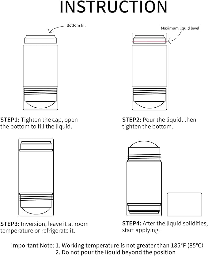 - Wide-Application:The Refillable Deodorant Containers perfect for Deodorant, Lip balm, Lipstick,Lotions, Moisturizer, shea butter, Crayons, Chalk, Butter/margarine dispenser. Ideal for home/school/traveling/Business social/party/camping/dating