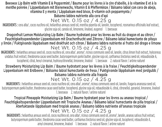 - FOUR FLAVORS: With four flavors, including Beeswax, Dragonfruit Lemon, Strawberry and Tropical Pineapple, this lip balm is a perfect gift for holidays like Valentine's Day, Easter and Mother's Day