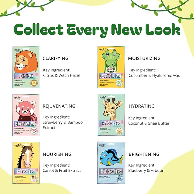 Epielle Character Face Mask Wild Kingdom 12 Pack, Fun & Effective Korean Skin Care, Spa Party Favors, Stocking Stuffers, Birthday Gifts for Women, Thanksgiving Essentials