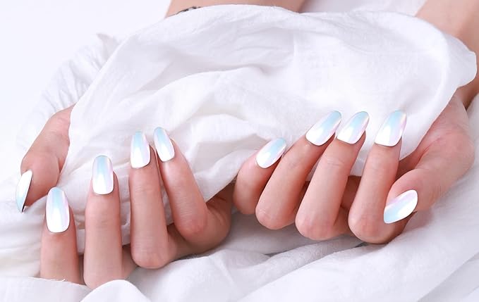 - 【Unicorn Aurora Powder】1gram in the jar. White based pearl powder for chrome nails. These powder has chameleon effect when applied on black gel polish base, it will getting an aurora effect when applied on white base, and if applied on red base, it will getting red aurora effect. So much fun from only one powder.