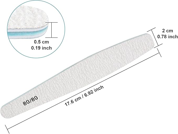 - 80/80 Grit Nail Files: Perfect size of 7.36 x 0.98 x 0.12 inches (18.7*2.5*0.3cm), Delivers straight, clean sidewalls, coarse and rough gravel, polished fast, suitable for long fingernails fast grinding short