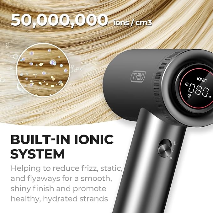 - Millions of Negative Ions for Silky Results and Reduced Frizz - The TYMO hair dryer produces millions of negative ions during the drying process, helping your hair stay silky without frizz, giving you a salon-quality finish every time.