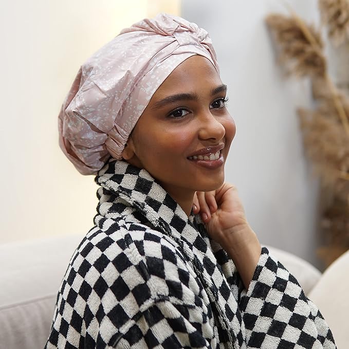 - MAKE EVERY SHOWER A LUXURY – Our quality-made womens shower caps help MAINTAIN YOUR BLOWOUT, natural curls, or whatever hairstyle you rock by LOCKING OUT MOISTURE in the shower. Not only will your follicles benefit from LESS FREQUENT WASHINGS, our shower bonnet will also eliminate the EXTRA TOUCH-UPS you would normally have to do post-shower – SAVING TIME, and saving your mane from EXCESS HEAT.