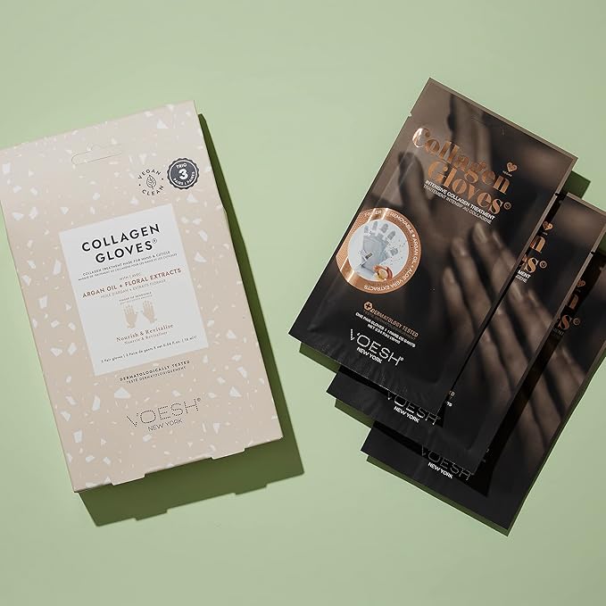 VOESH Collagen Gloves Trio, Vegan Hand Masks, 1 Pack of 3 pairs, Moisturizing Hand Mask, Lotion Gloves, Hydrating Gloves, Hand Care, Spa Manicure Gloves, Dry Hand Treatment