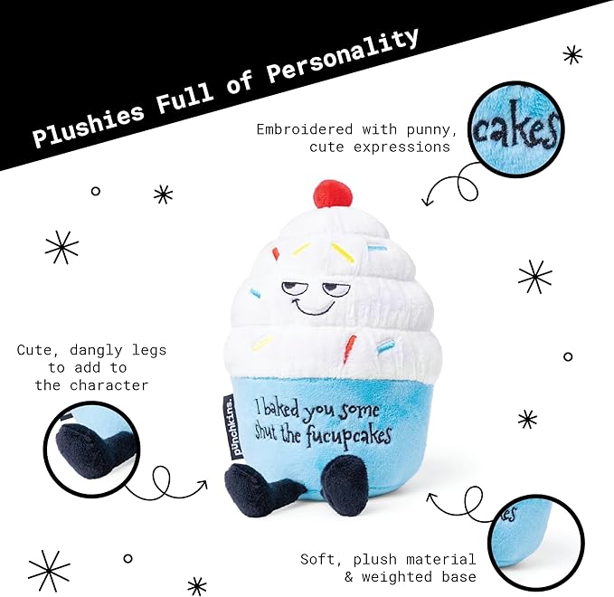 Punchkins Cupcake Plushie - I Baked You Some Cupcakes Funny Cupcake Plush, Sarcastic & Sassy Food Plush Toy for Gifting