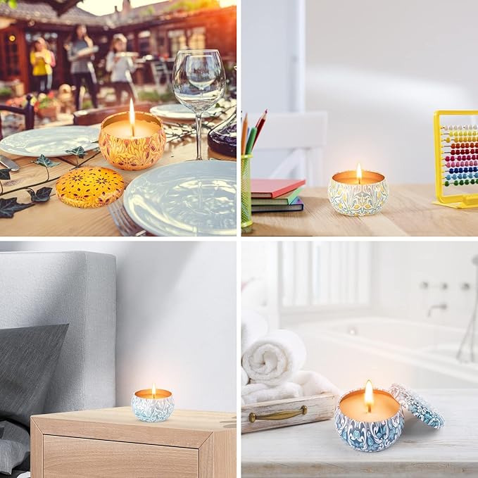 - 【LONG-LASTING TIME COMPLETE COMBUSTION】 Each scented candle is 2.5oz can burn for 15-20 hours, total 30oz burning time is up to 180-240 hours, adding continuously pleasant scents. Creating mood, relief and relaxation for you and guests.