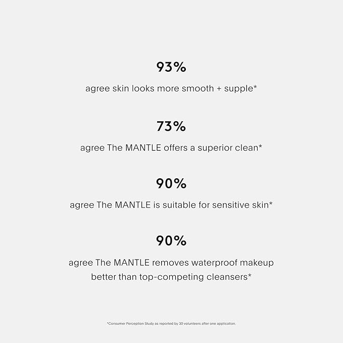 - MAKEUP-REMOVER: The MANTLE melts away water- and oil-soluble debris—including waterproof makeup, sunscreen, dirt, sweat, and pollutants—without stripping the skin, ensuring a deep cleanse without moisture barrier impairment or uncomfortable tightness