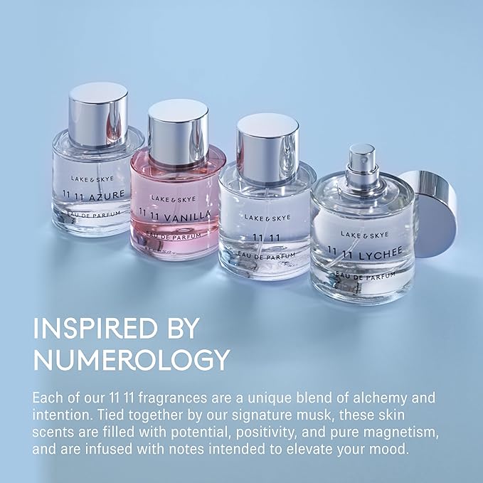 - Lake & Skye 11 11 Eau de Parfum contains notes of musk and white ambers that unfold on skin to become your signature—and your good luck charm. Infused with notes intended to elevate your mood.