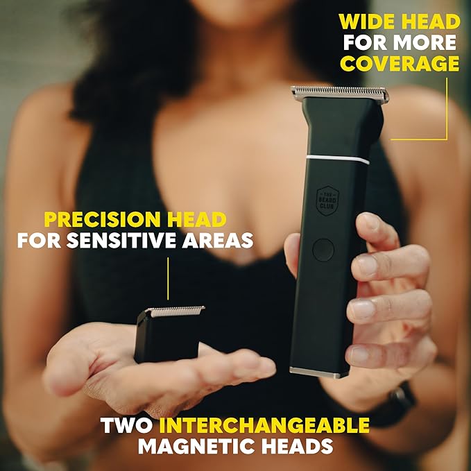 - INTERCHANGABLE MAGNETIC HEADS - Extra sharp Titanium bladed wide head for full body and back grooming; Soft ceramic precision head for manscaping below the waist. Multigroomer for the styling, flexibility and detailing all in one package