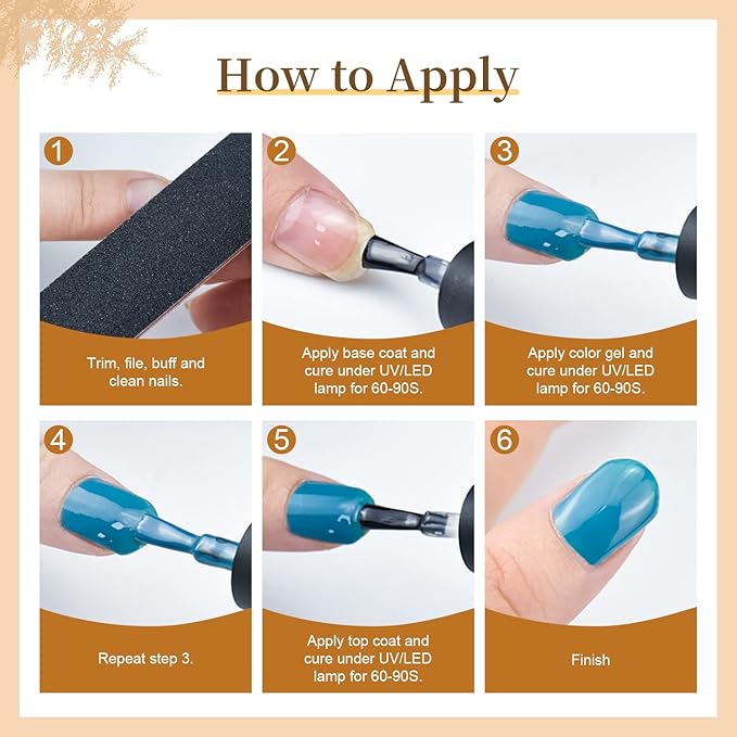 - Tips: Due to different display and light source, gel nail polish may have a little color difference, but this is normal. If you do not know how to operate, please follow the instruction manual; if you have other questions, please contact our staff in time.