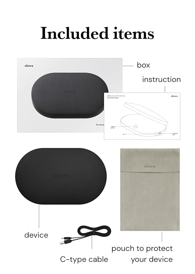 ohora Pro Portable Gel Lamp (Black) - 11W Max, Timer (60s), Portable Lamp for Curing Gel Nail Art, Polish, Stickers and Strips