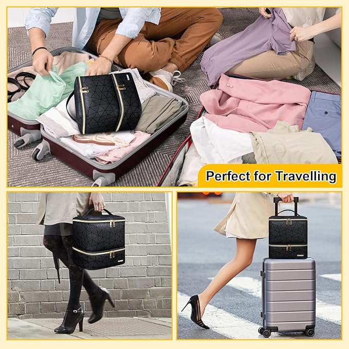 PU Leather Nail Polish Organizer Bag Holds Nail Lamp& 30 Bottles (15ml-0.5 fl.oz), Portable Travel Nail Kit Storage Carrying Case, Double Layer Nail Supplies Organizer Handbag (Elegant Black)
