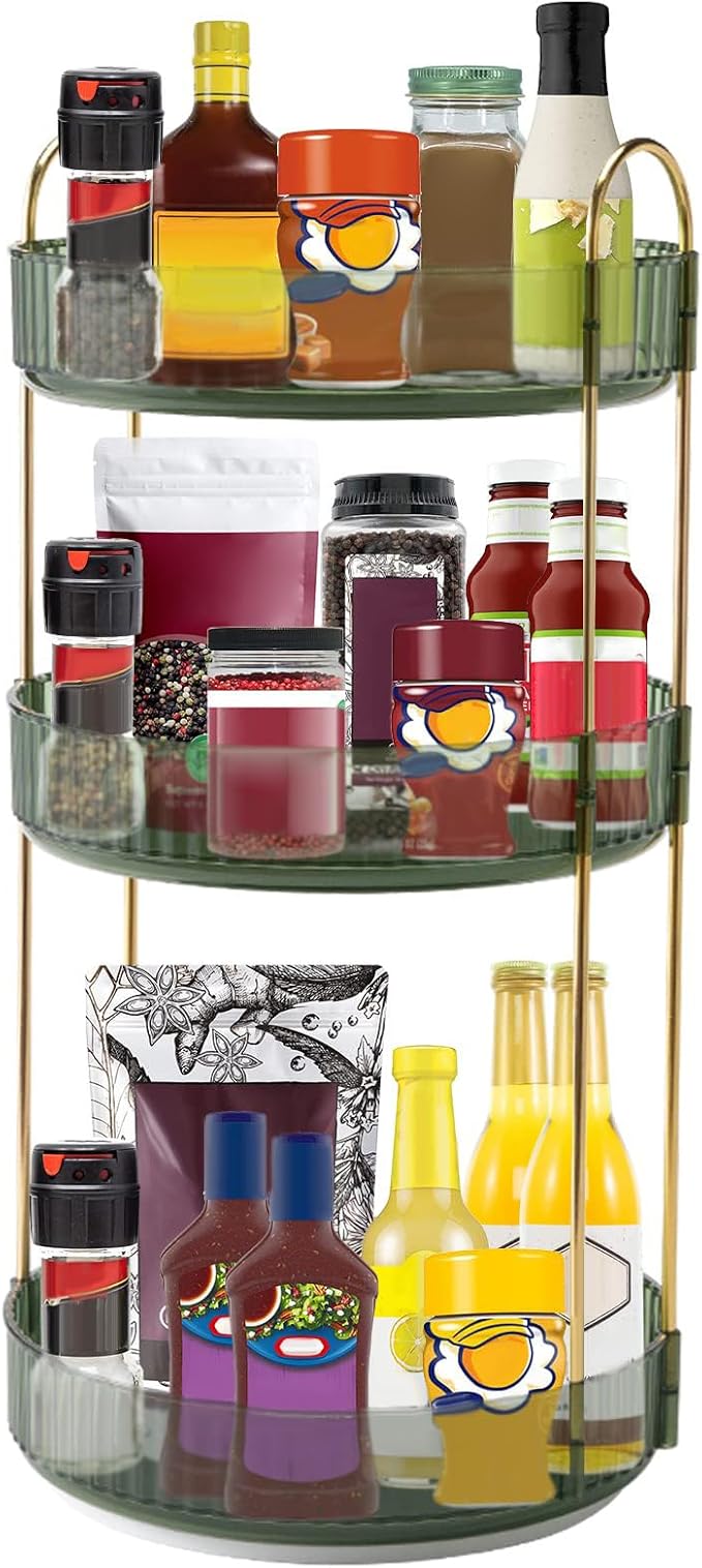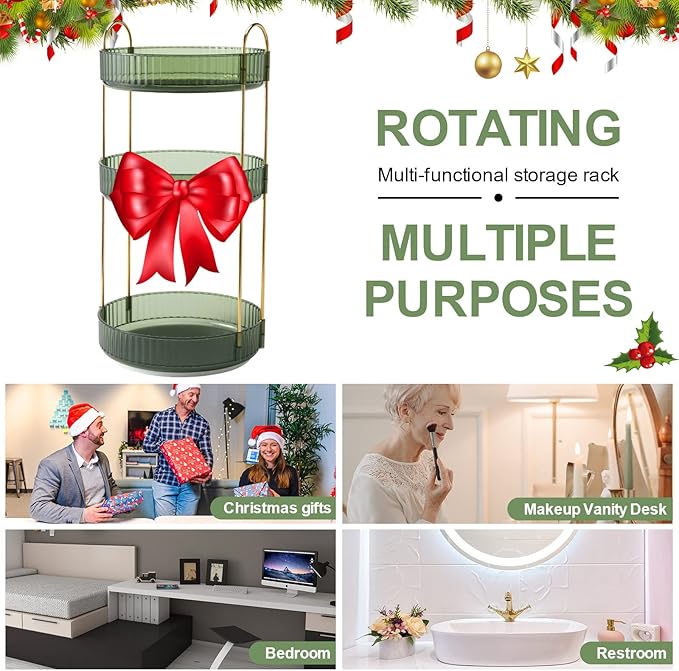 - 🎀【Multi-occasion uses】This turntable organizer can be used as: perfume holder organizer, bathroom organizer countertop, nail polish organizer, dresser organizer countertop, skin care organizer, spice racks, fruit case, etc. The bedroom, bathroom, closet cabinet, kitchen, dresser, office, or countertop are good places to place it
