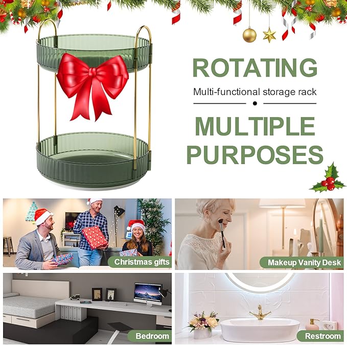 - 🎀【Multi-occasion uses】This turntable organizer can be used as: perfume holder organizer, bathroom organizer countertop, nail polish organizer, dresser organizer countertop, skin care organizer, spice racks, fruit case, etc. The bedroom, bathroom, closet cabinet, kitchen, dresser, office, or countertop are good places to place it