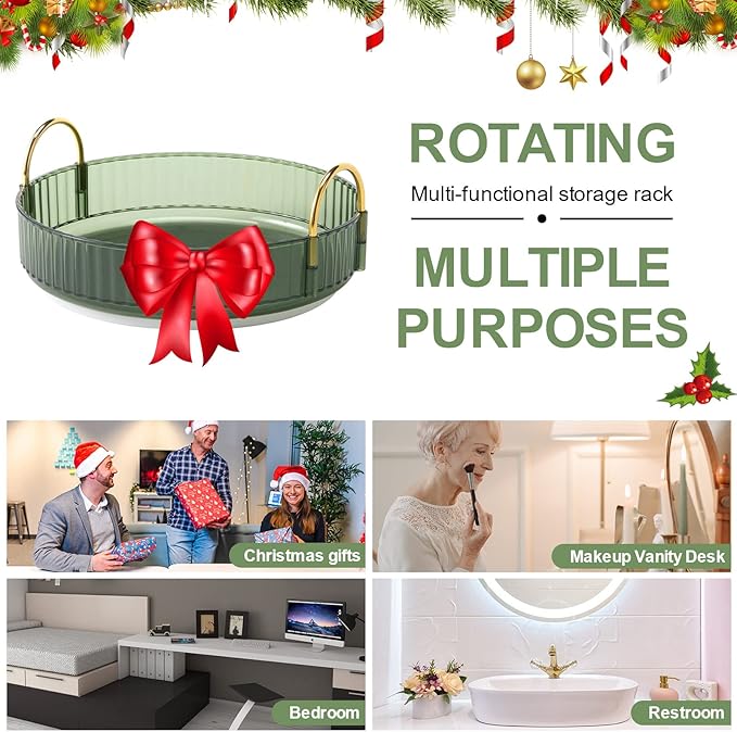 - 🎀【Multi-occasion uses】This turntable organizer can be used as: perfume holder organizer, bathroom organizer countertop, nail polish organizer, dresser organizer countertop, skin care organizer, spice racks, fruit case, etc. The bedroom, bathroom, closet cabinet, kitchen, dresser, office, or countertop are good places to place it