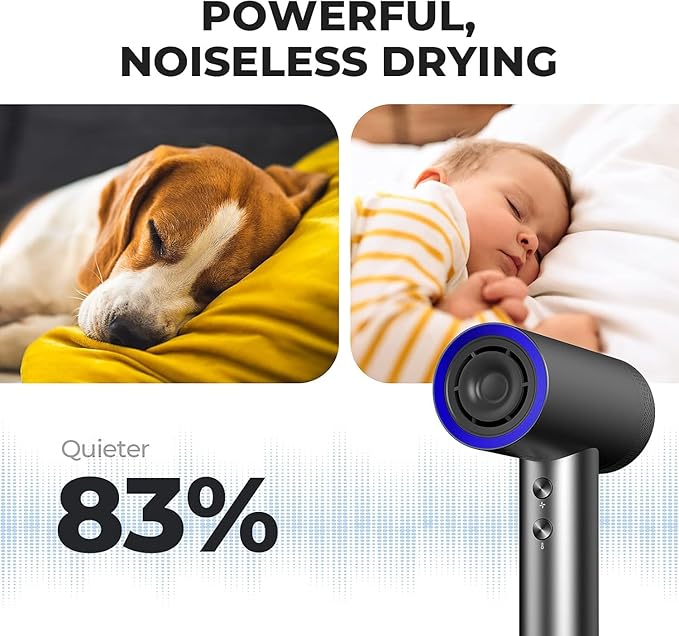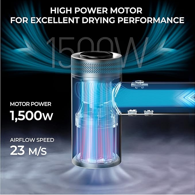 - 110,000RPM Brushless Motor for Extra Fast Drying - With a 1,500W powerful brushless motor, TYMO AIRHYPE High-Speed hair dryer provides 23m/s strong airflow which can give you a extra fast drying, saving your drying time in half even if you have a thick long hair. Also, with only 69dB low noise setting, you won’t need to bear an annoying motor sound any more.