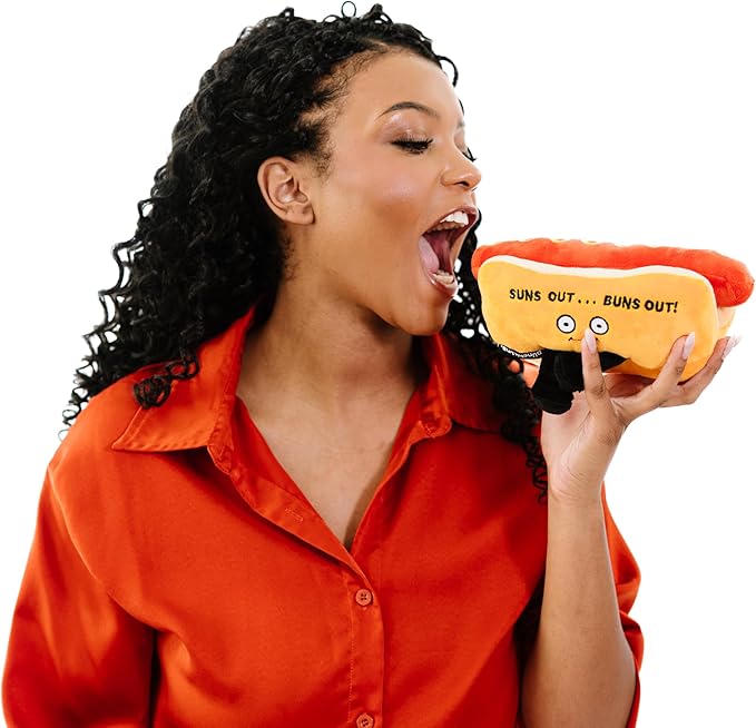 Punchkins Hot Dog Plushie - Suns Out, Buns Out Cute Hot Dog Plush, Sassy & Funny Food Plush Toy for Gifting