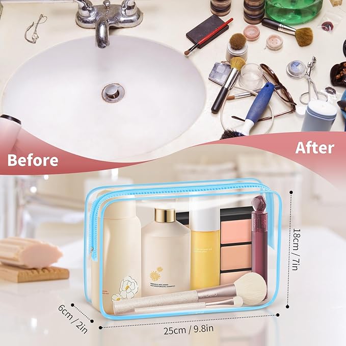 - 【Clear Makeup Bags】The transparent design allows for quick and easy identification of contents, making it perfect for travel, daily use, and organization. It keeps your travel accessories neatly stored while reducing the risk of spills or leaks during your journey.