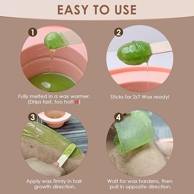 - Easy Application & Superior Wax Quality: Ideal for both beginners and experienced waxers alike, KOTAMU hard wax melt smoothly and apply easily without breaking or leaving residues, ensuring a clean, hassle-less waxing session. Our high-quality wax guarantees consistent performance, with clear instructions provided for simple, flawless at-home waxing