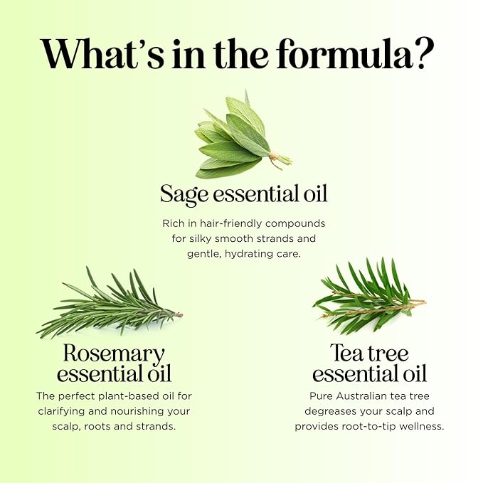 - Sage Tea Tree Conditioner - Our sage and tea tree hair and scalp treatment conditioner for damaged dry hair helps you wash away the flakes thanks to our essential oil scalp moisturizer formula