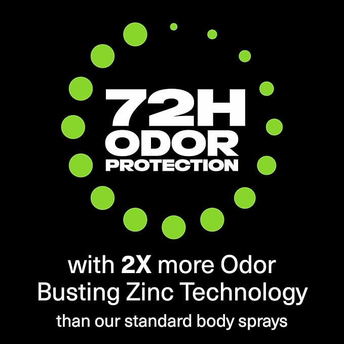 - How do we keep you smelling fresh for 72 hours? Thanks to 2X more of our odor-busting Zinc technology than the standard body sprays. And that’s not all! No harsh ingredients. A refreshing Aluminum-free formula made with essential oils.
