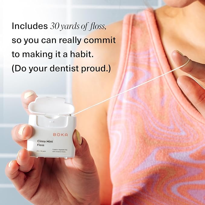 Boka Cinna Mint Woven Dental Floss, Made from Natural Vegetable Wax, Teflon-Free, 30 Yards of Waxed Floss (Pack of 1)