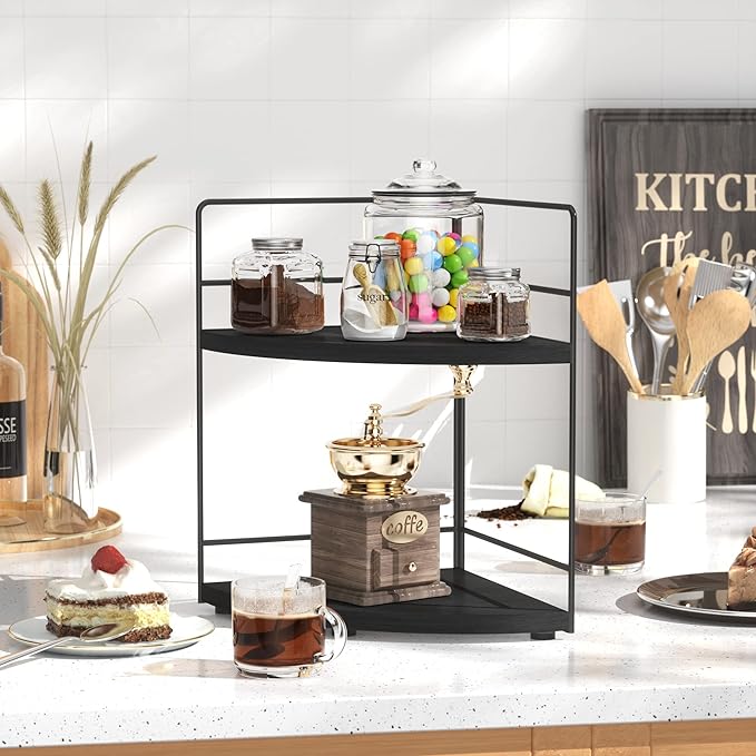 ZGO 2-Tier Bathroom Counter Organizer, Corner and Makeup Organizer for Vanity and Kitchen Counter, Perfume Organizer (Black)