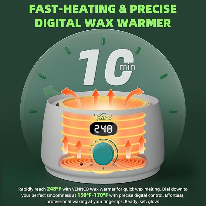 - 【LARGER & DURABLE SILICONE LINER】: Tired of messy clean-ups? VENNCO Waxing Kit includes a generously sized and sturdy Silicone Bowl, making it easy to melt and clean the wax pot for hair removal without a mess. Plus, it's perfect for wax recycling, ensuring less waste and more savings in the long run. (Tip: There is also an aluminum Bowl, you can choose your favorite Bowl to use, but please do not use together, this will affect the heating efficiency)