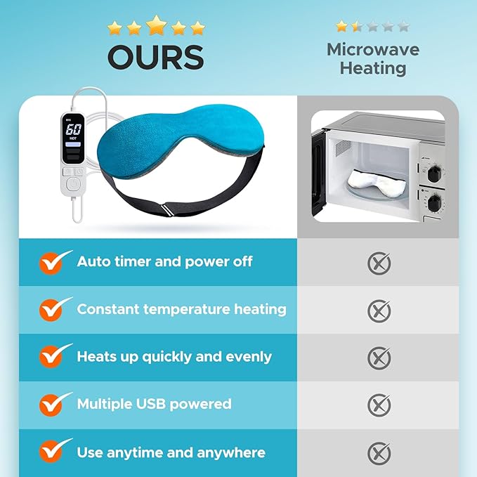 - Far-infrared Heat Relieves Eye Discomfort: Our heated eye mask uses far infrared heating technology to generate heat quickly, increase oil secretion, effectively relieve dry eyes, eye fatigue, sinus migraine, dark circles, blepharitis, stye, puffiness, and MGD, and provide ultra comfy hot for your eyes. A great choice for a Christmas/Valentine's Day/Mother's Day/Father's Day Birthdays/Thanksgiving gift.