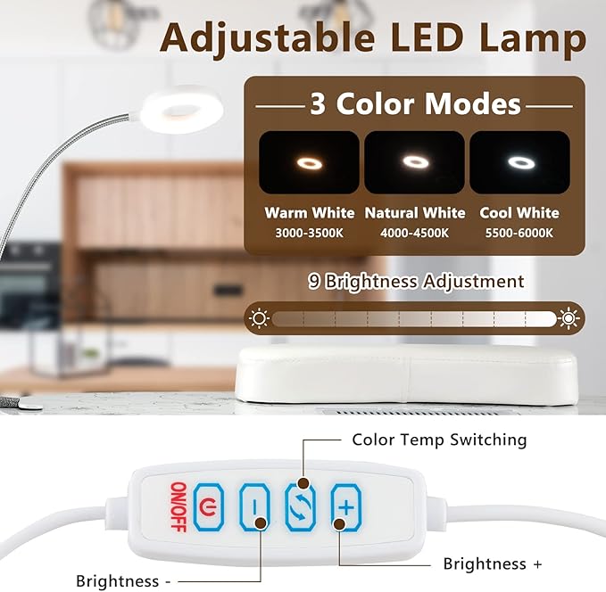- ๐ ๐ฝใ9 Adjustable Light & Bendable LED Lampใ 3 color modes (warm white, natural white, cool white) and 9 brightness adjustment can be adjusted by the controller. Bendable LED lamp with metal clip fits table sides and can be freely bent to adjust lighting angle, offering you a clearer view of nail details to improve manicure efficiency.