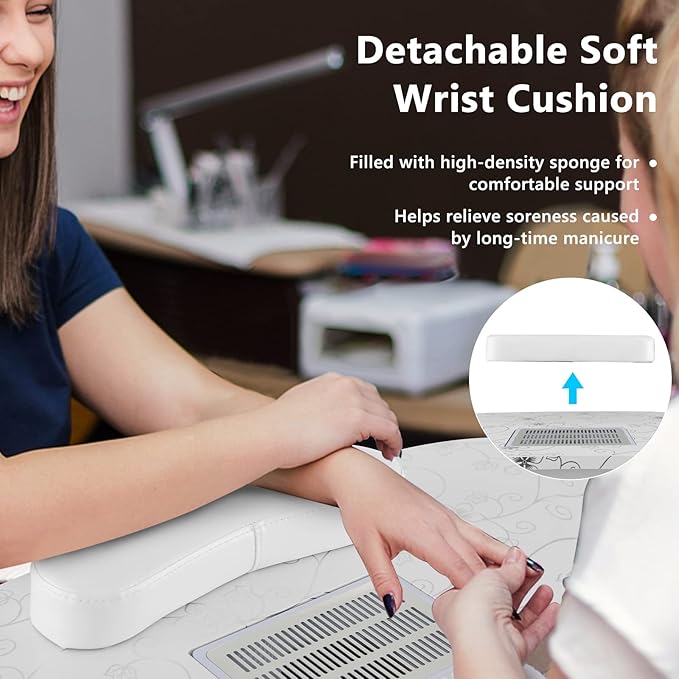 - ๐ ๐ปใDetachable Soft Wrist Cushionใ Filled with thick sponge, the soft wrist cushion gives comfortable support to your client's wrist, which helps relieve soreness caused by long-time manicure. What's more, the wrist cushion is also removable, which greatly facilitates your daily cleaning.