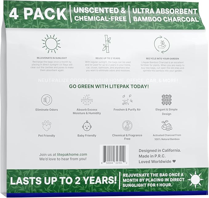 - LITEPAK FRESHNESS: Every purchase of our shoe activated charcoal absorber is backed by our 100% satisfaction guarantee. We stand by our guarantee for any of our other activated charcoal bags odor absorber products such as the boxing glove deodorizer, shoe deodorizer, home deodorizer, car deodorizer, and our fridge deodorizer.