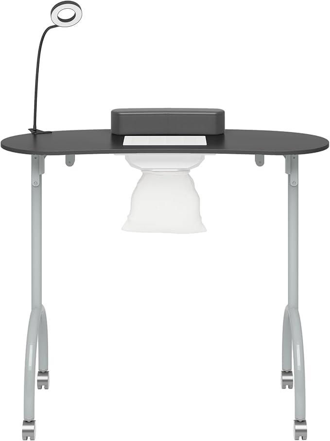 TABU Portable Manicure Nail Table, Foldable Manicure Table with Dust Collector Fan, LED Lamp, 4 Lockable Wheels and Carry Bag, Professional Nail Desk with Wrist Cushion (Black)