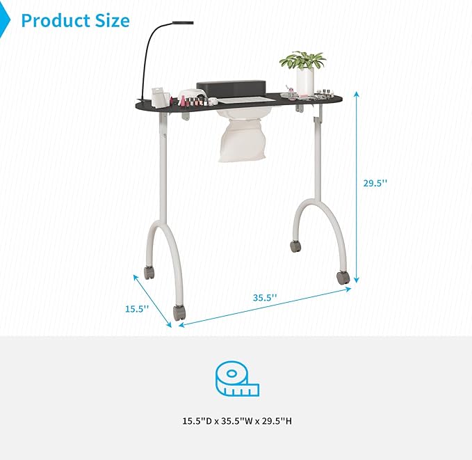 - 【Lockable Rotating Wheels】 Our nail desk comes with 4 lockable and 360-degree swivel wheels. With them, the table can be easily moved around locked to keep in fixed position. It is ideal for nail art, beauty salon, Spa, professional manicurists.