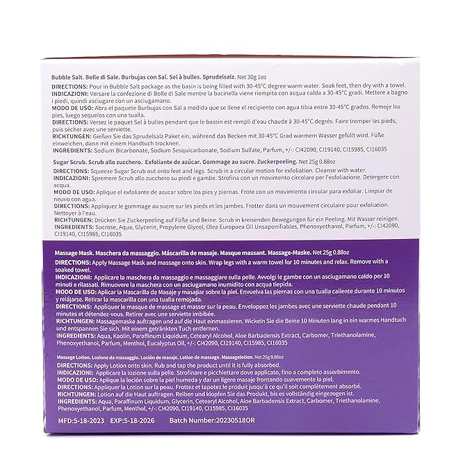 - ๐At Home Pedicure Foot Soak: Our pedicure foot spa include bubble salt, sugar scrub, massage mask and massage lotion, 4 step foot soak will give you a relaxing experience for your tired achy feet.