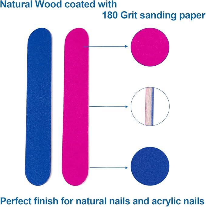 - Premium Quality Material: Our mini disposable fingernail files are crafted using high-quality sandpaper and wooden sticks, ensuring a healthier and more hygienic nail care experience. The emery board and adhesive tape are of superior quality, guaranteeing long-lasting use. Available in attractive pink and blue colors, these double-sided wooden nail files add a fun element to your nail care routine. They are also washable for enhanced cleanliness.