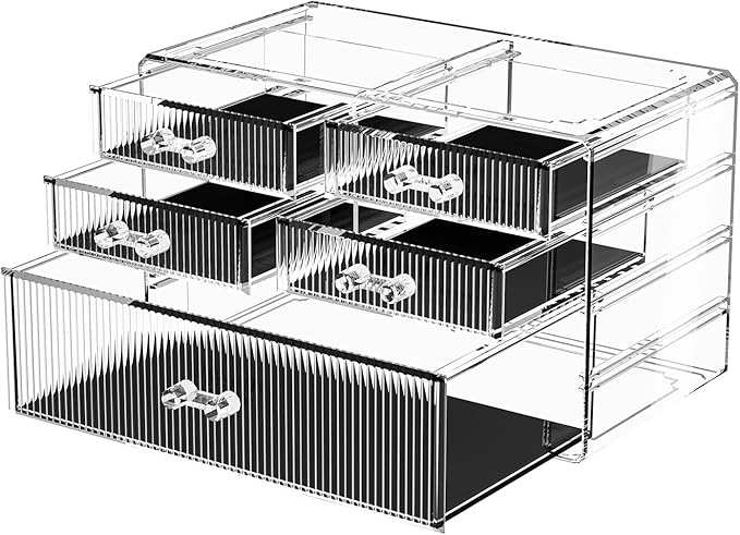 - With ample storage space, this make up organizers and storage is perfect for storing all your favorite makeup products, jewelry, and other accessories. The bathroom organizer features several compartments and drawers that are perfect for storing eyeshadows, lipsticks, brushes, and other makeup products.