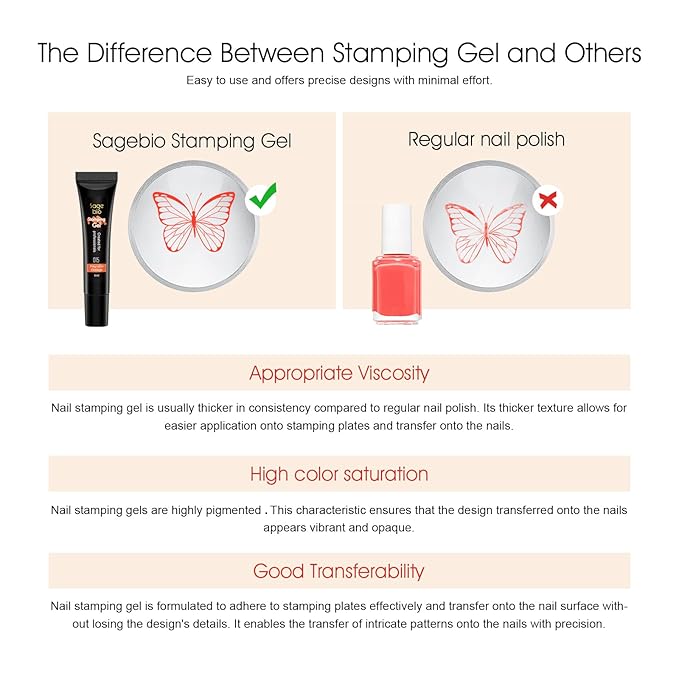 - 【Easy to Use】Nail art clear stamper set Made from natural resin, lower odor, safe ingredients, which lets you stop worrying about hurting to your health. These gels can be scraped repeatedly for stamp plates and stamper. Need to be cured under UV/LED lamp.