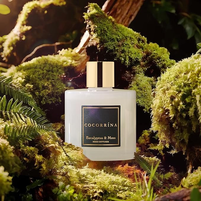 Cocorrína Reed Diffuser Sets- Eucalyptus & Moss Scented Diffuser with Sticks Home Fragrance Reed Diffuser for Bathroom Shelf Decor