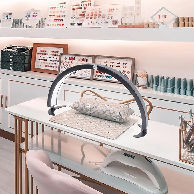 - 40W 110-240V Half Moon Lamp -- Our nail tech lamp has 320 LED lamp beads, providing bright light up to 2000 lumens. It can help nail techs to see even small details of their work more clearly and detect any imperfections. Additionally, it can help to reduce eye strain and fatigue.