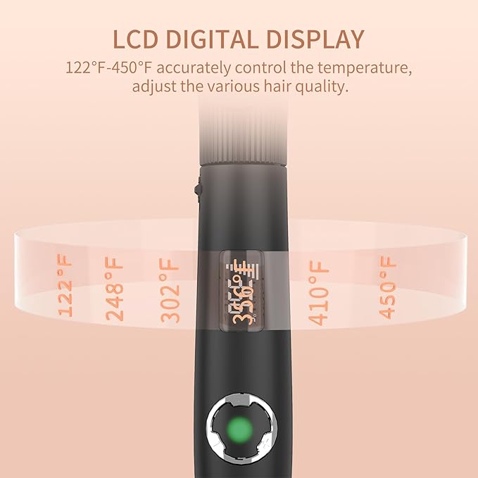 - 【MULTIPLE Temperature Settings & LCD Display】The curling wand has different temperature settings from 122°F to 450°F. Whether your hair is hard or soft, coarse or sleek, you can choose the right temperature to create your hairstyle. The hair curling wand is equipped with an LCD display screen, which can display the real-time temperature during the heating process.