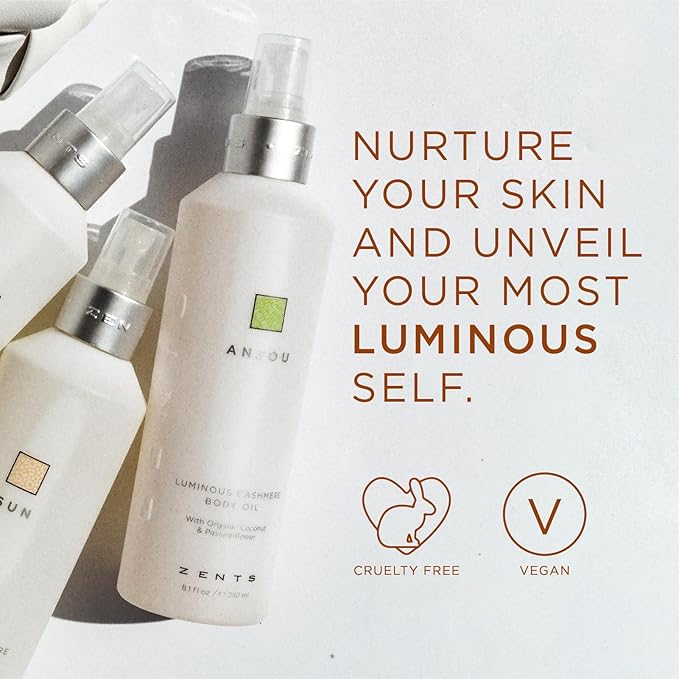 Zents Luminous Cashmere Body Oil (Travel Size - Mandarin Fragrance) | Moisturizing Body Oil with Vitamin E & Organic Coconut Oil | Softens & Smooths Skin | 1 fl oz | TSA Approved