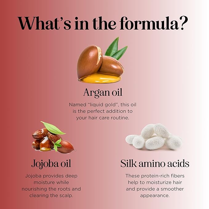 - Argan Oil Shampoo and Conditioner Set - Our dry hair shampoo and conditioner is packed with Moroccan argan oil that helps enhance your hair’s shine volume and texture with added nourishing jojoba oil