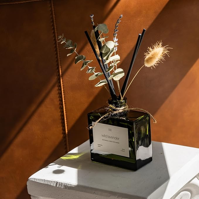 - QUALITY MATERIALS: Made with natural essential oils for an authentic and high-quality fragrance, this 5 oz green glass reed diffuser comes in ready-to-give premium packaging. The dried flowers will elevate any room’s aesthetic.