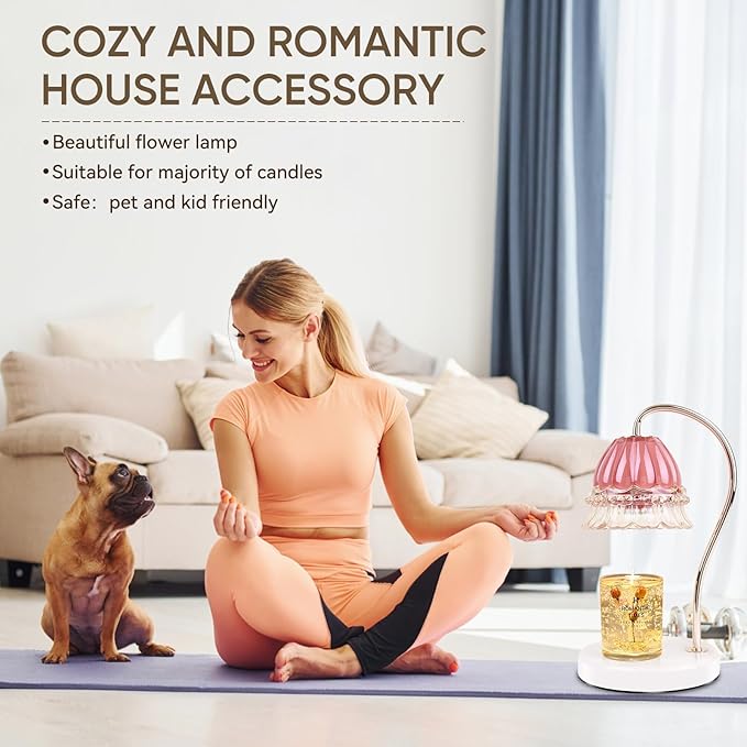 Candle Warmer Lamp with Timer,Gifts for Mom,Marble Base and Glass lampshade,a Beautiful Flower Candle Lamp with 2 Bulbs Candle Jar Light