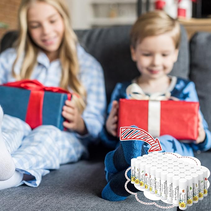 50 Pcs Christmas Christian Lip Balm Bulk Bible Verses Lip Balm Scripture Christian Gifts for Women Faith Religious Church Party Favor Inspirational Gift for Coworker Staff Employee(Sunflower)