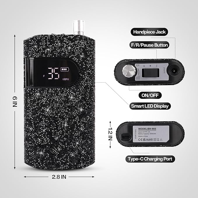 - Friendly to Beginners: The simple design and user-friendly controls of this sparkling nail drill make it easy for beginners to understand and use. It's perfect for those who are new to nail art and nail manicures, from beginners to experienced nail care professionals.