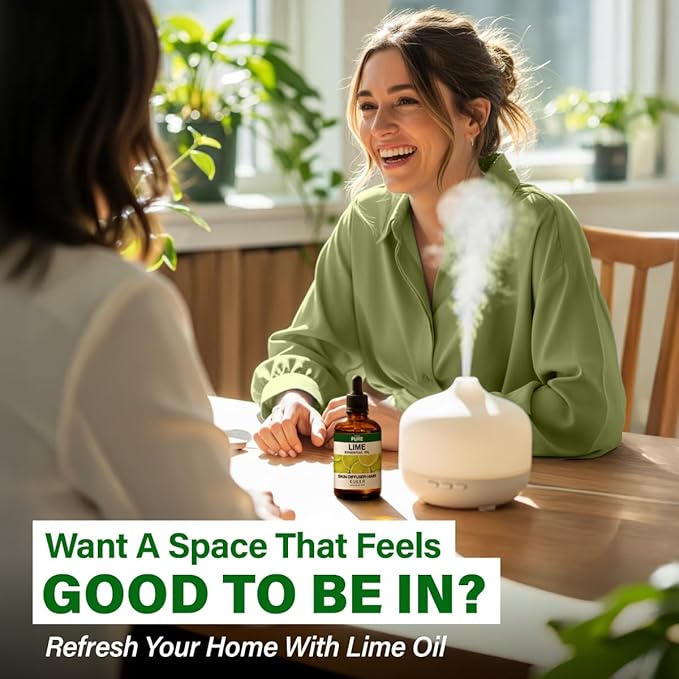 - Lime essential oil for diffuser. This lime diffuser oil features a zesty, vibrant aroma that may uplift and refresh any space. Simply diffuse a few drops for 30 minutes or add it to your cleaning routine for a burst of freshness in any space.