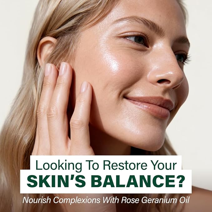- Rose geranium essential oil for skin. Rose geranium essential oils for skin may be your key to rosy smooth-looking skin. Nourish dull-looking complexions by applying 2-3 drops on the face or skin with a carrier oil or moisturizer.